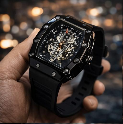 Upgrade your style with the Richard Black Belt Skeleton Watch, a bold and modern timepiece designed for men who appreciate standout accessories. Featuring a striking square skeleton dial, this watch showcases a detailed mechanical-inspired design that adds a luxury look to your wrist.